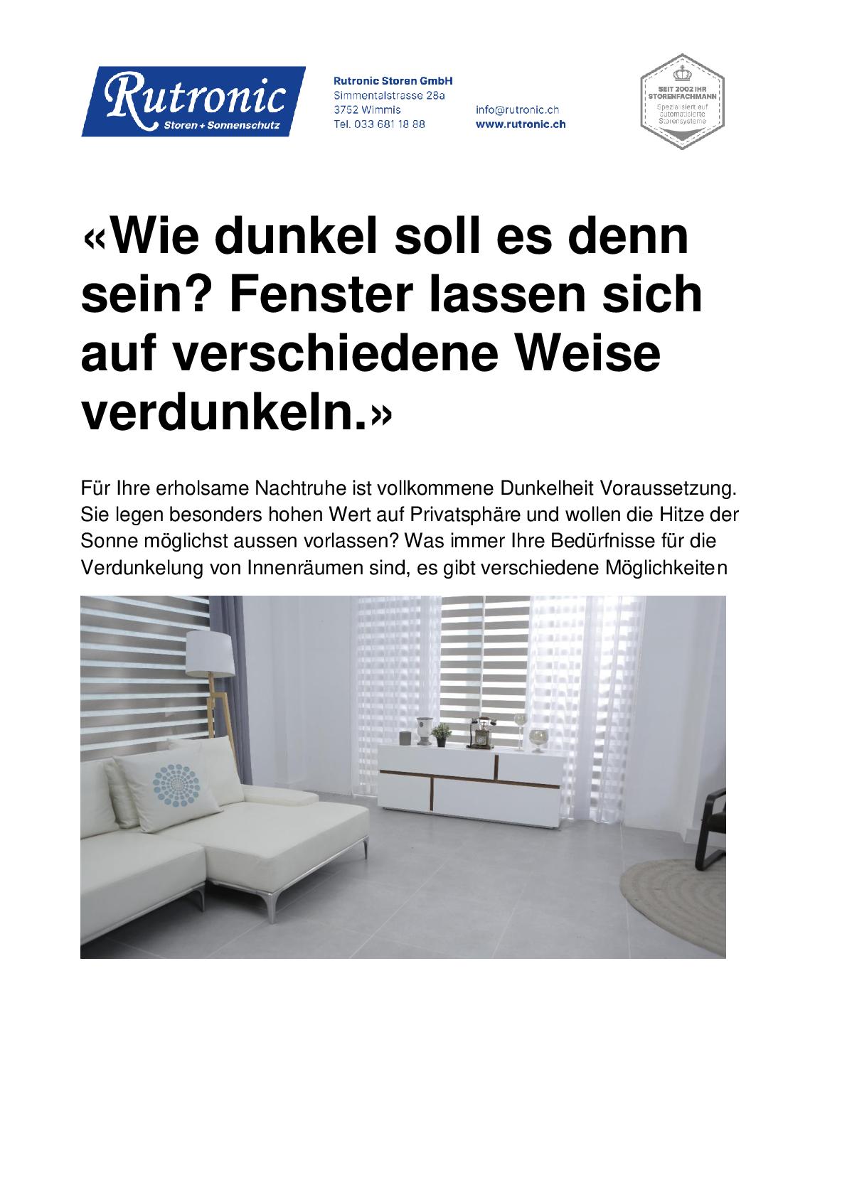 Für Ihre erholsame Nachtruhe ist vollkommene Dunkelheit Voraussetzung. Sie legen besonders hohen Wert auf Privatsphäre und wollen die Hitze der Sonne möglichst aussen vorlassen? Was immer Ihre Bedürfnisse für die Verdunkelung von Innenräumen sind, es gibt verschiedene Möglichkeiten.